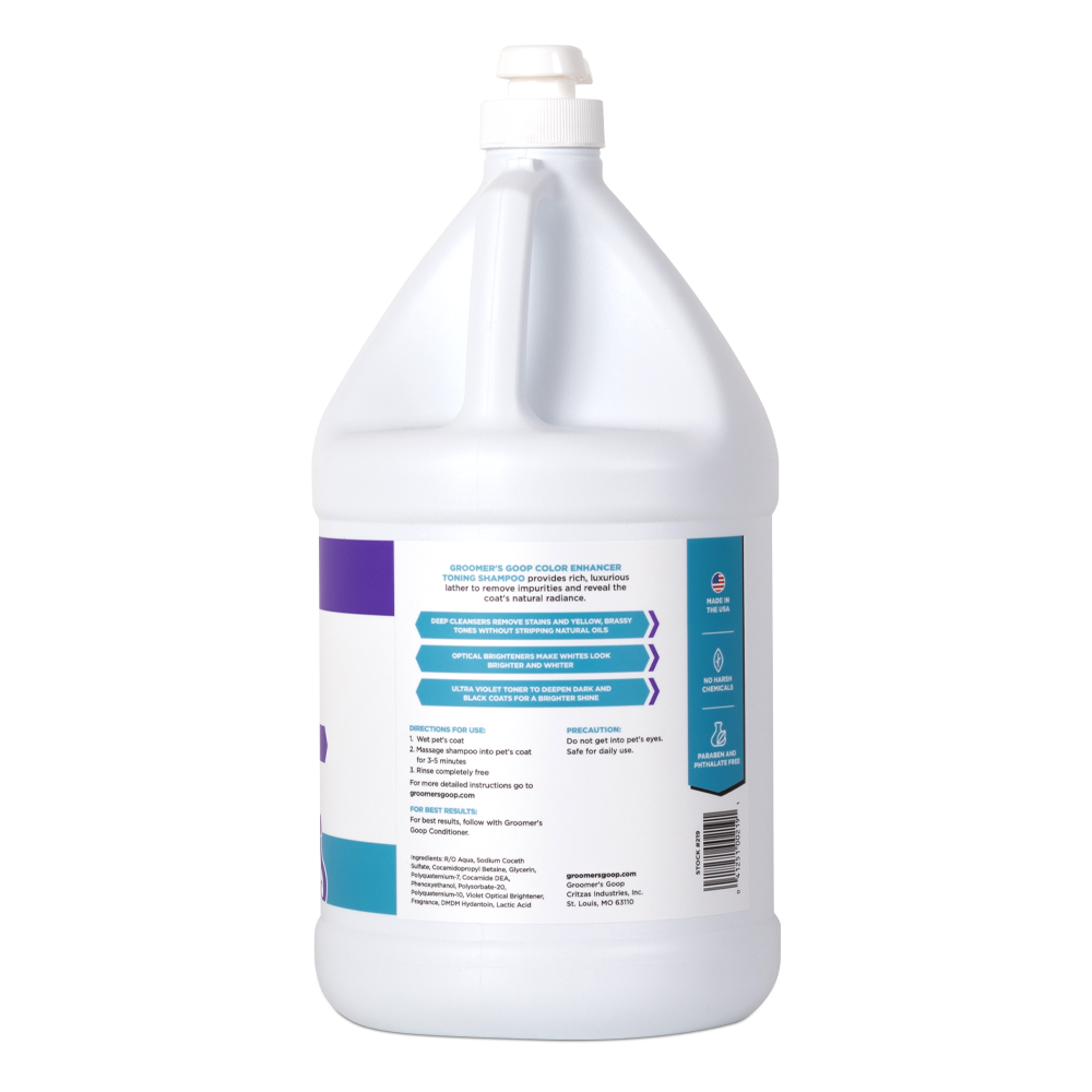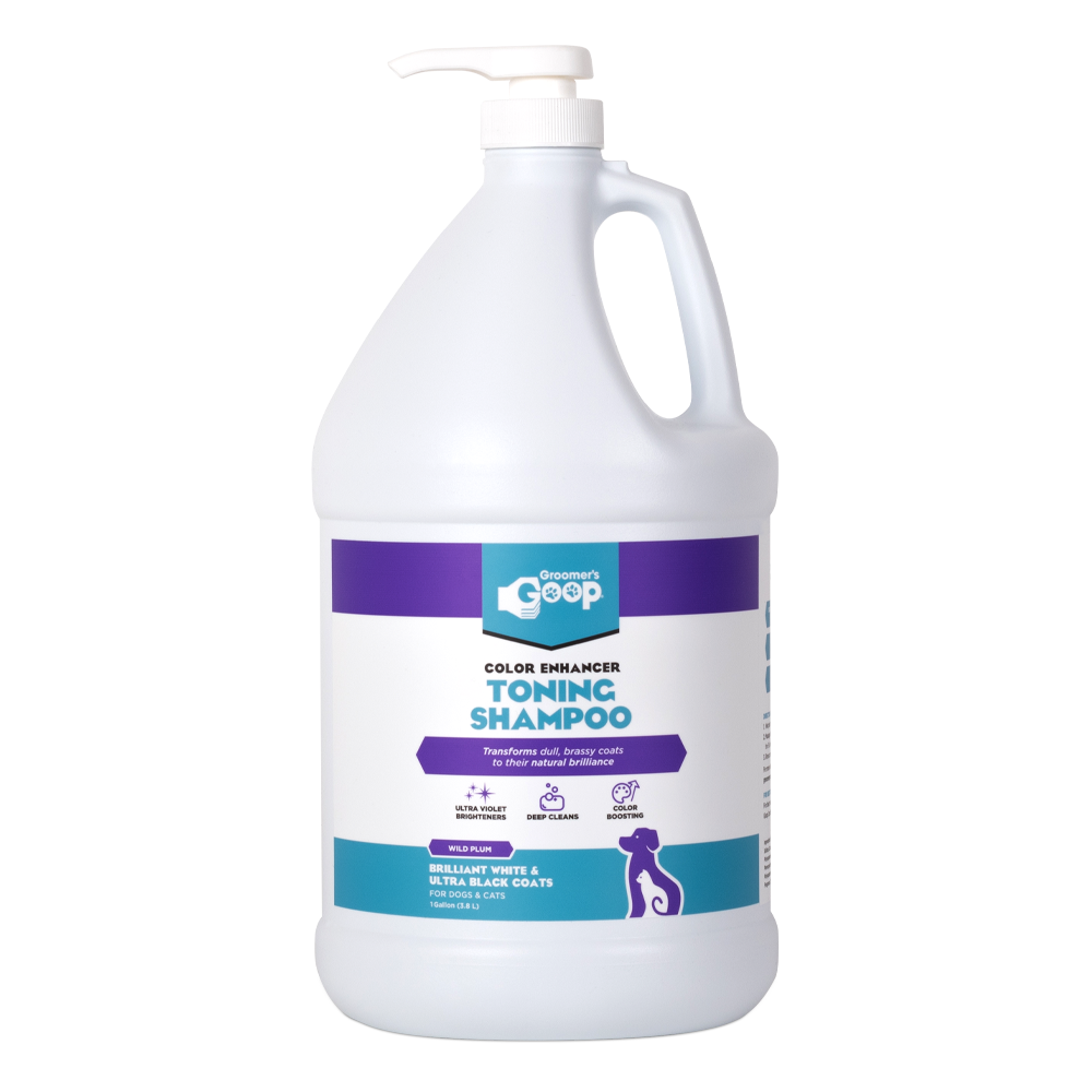 Groomer’s Goop Color Enhancer Toning Shampoo provides rich, luxurious lather to remove impurities and reveal the coat’s natural radiance.